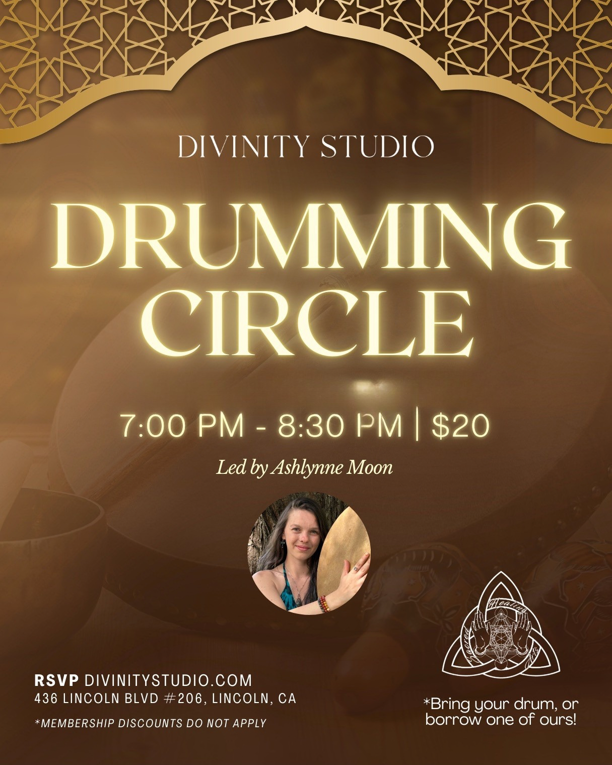 Join us for an evening of Drum Medicine with Ashlynne Moon @AshlynneMoon, an Intuitive Healer and expert in ceremony, ritual, and sound healing. Ashlynne's deep connection with drumming and energetic attunement creates a powerful experience for all participants.